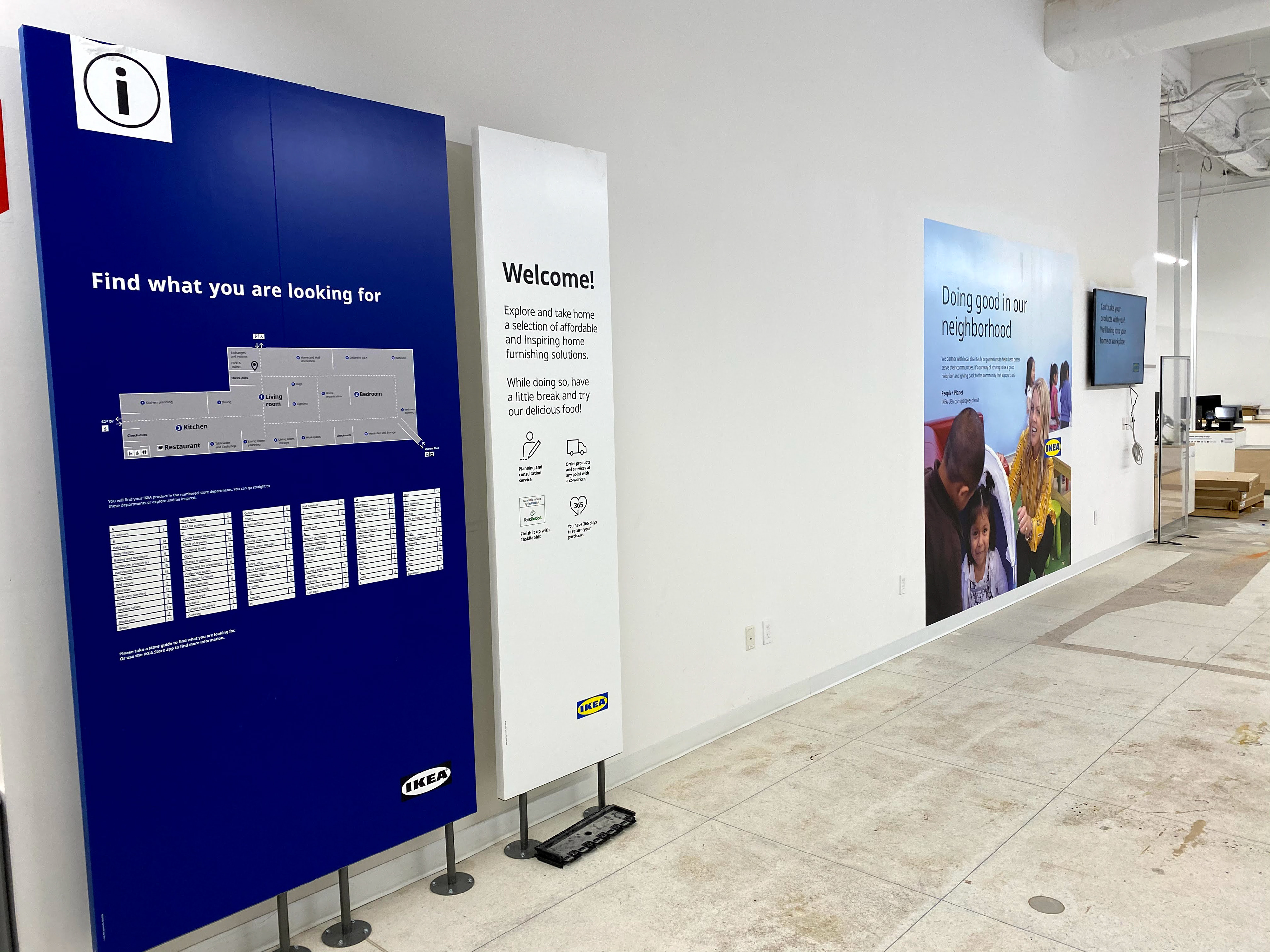 Completed flagship entryway featuring Scandinavian-themed signage and customer touchpoints.