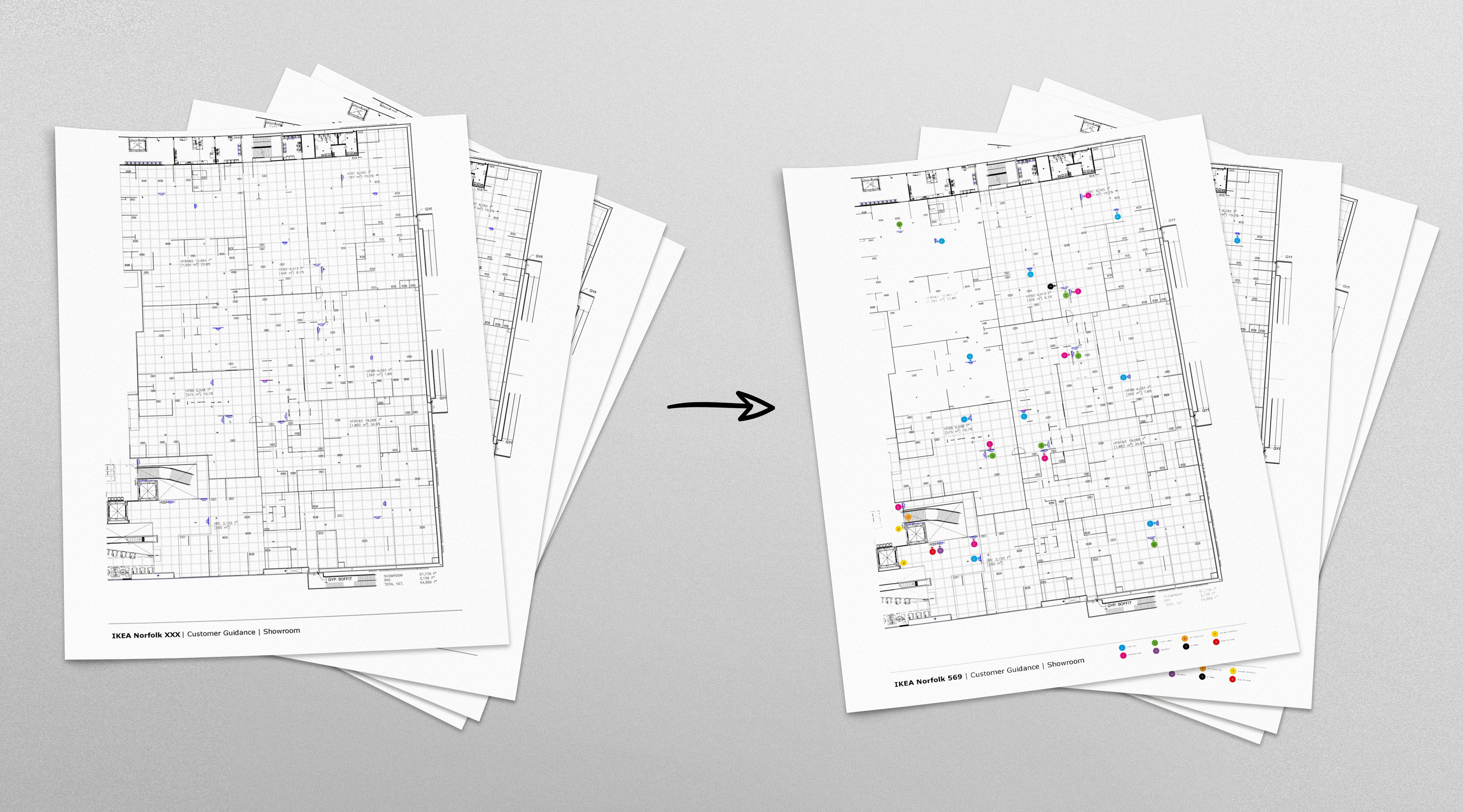 Utilized architectural floor plans to devise placement strategies for the showroom, marketplace, self-serve warehouse, and support areas. Created custom numbering and braille packages for ADA compliance.