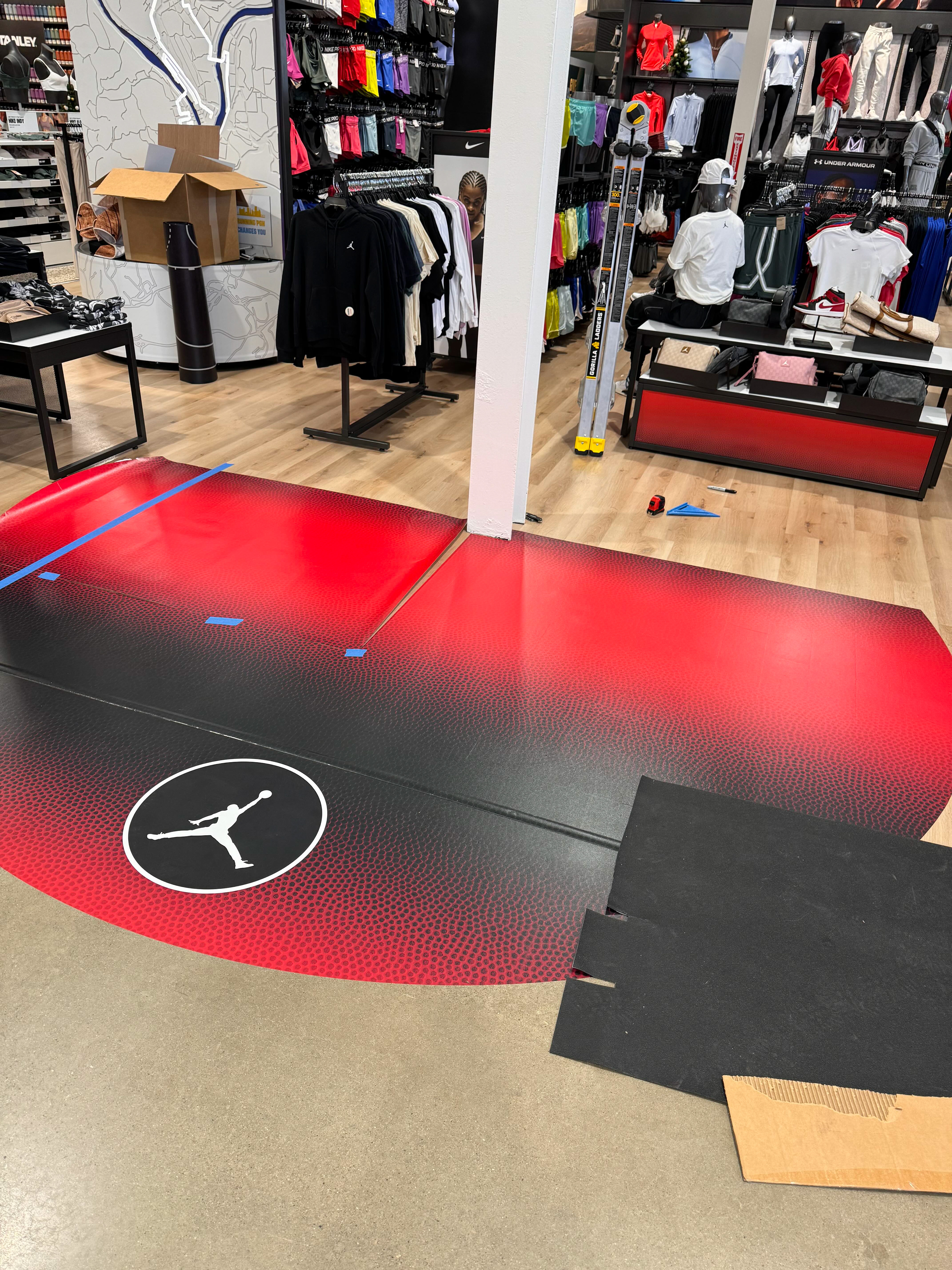 Personally installed the floor vinyl and column wrap, and reset the space to align with Nike’s brand standards. Progress-to-final images illustrate how I transition from planning to hands-on execution, delivering accurate in-store results.