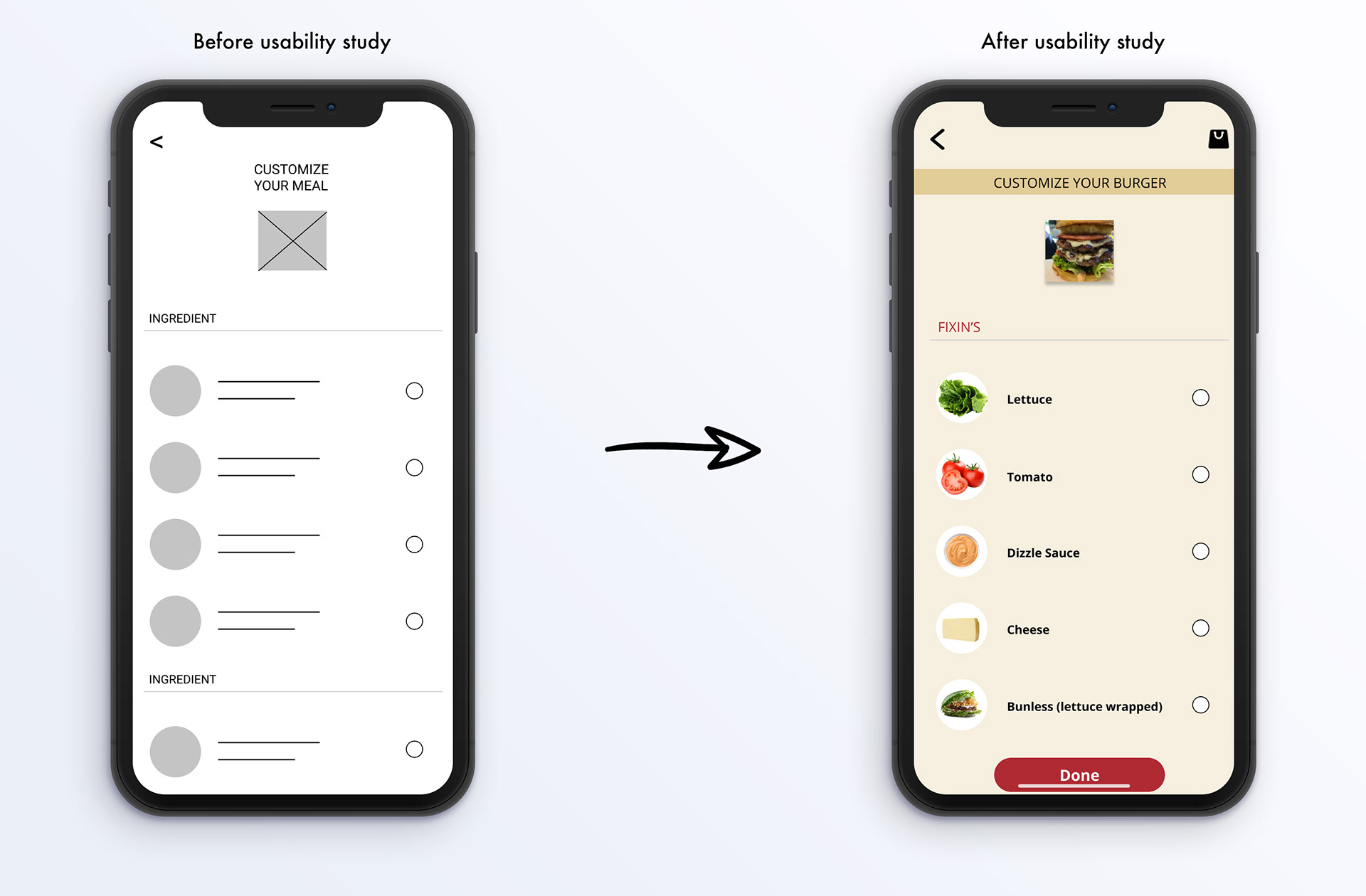The final high-fidelity prototype presented cleaner user flows for ordering a meal and checking out. It also satisfied user needs for more customization with ingredients and the option for more features.