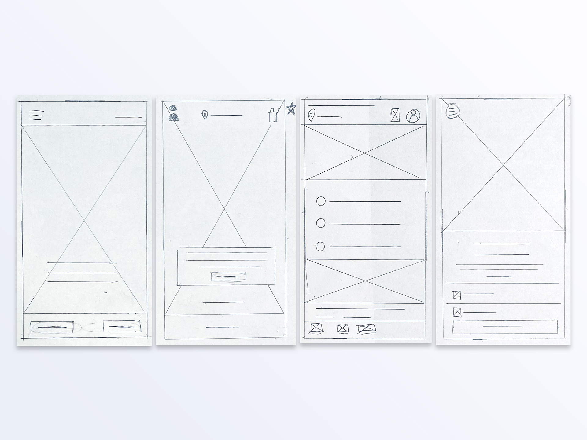 To start off, I drafted iterations of each screen of the app on paper to focus on user pain points.